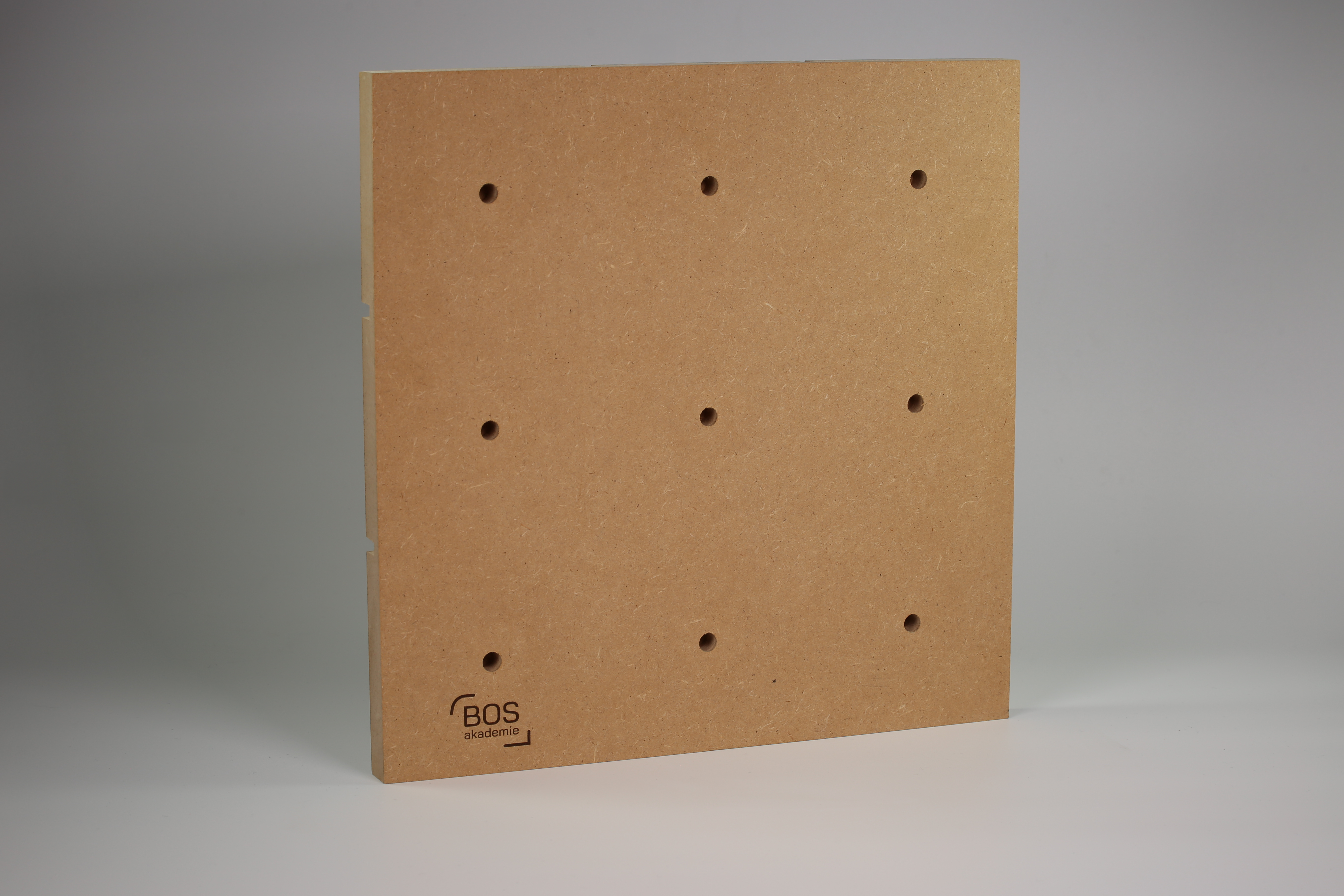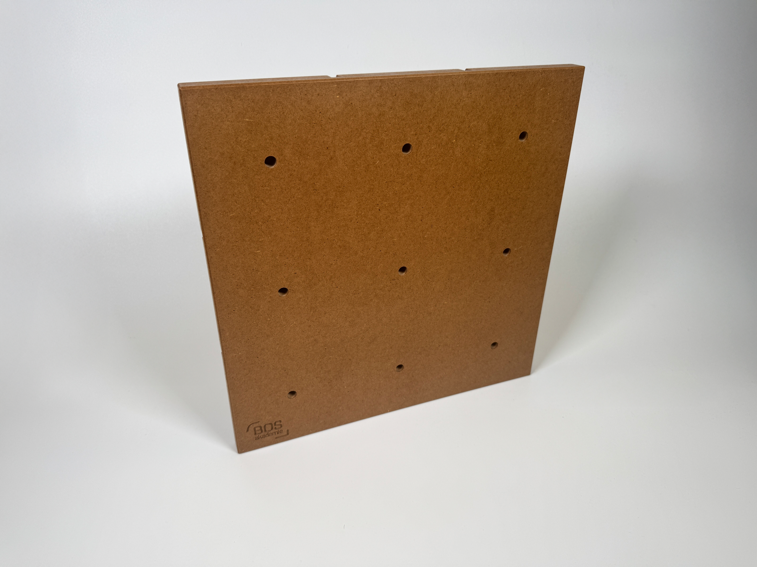 Die Bodenplatte bildet das stabile Fundament unseres modularen Taktik-Trainers und ermöglicht eine flexible Gestaltung individueller Grundrisse. Sie besteht aus hochwertigem und lackiertem MDF. Präzise Bohrungen an der Oberseite ermöglichen das einfache Einstecken von Pfeilern, sodass Wände, Zwischenböden und weitere Module sicher montiert werden können. Aussparungen an der Unterseite erlauben das Zusammenschrauben mehrerer Platten, wodurch beliebig große Übungsflächen entstehen.