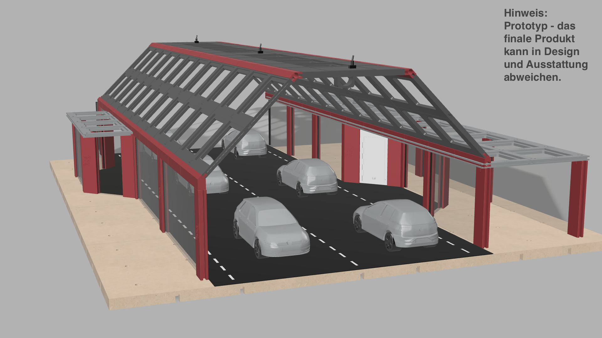 Erweitere den Taktik-Trainer um eine realistische Garage. Mit beweglichem Garagentor und einem Auto bietet dieses Modul optimale Bedingungen für Taktiktrainings.