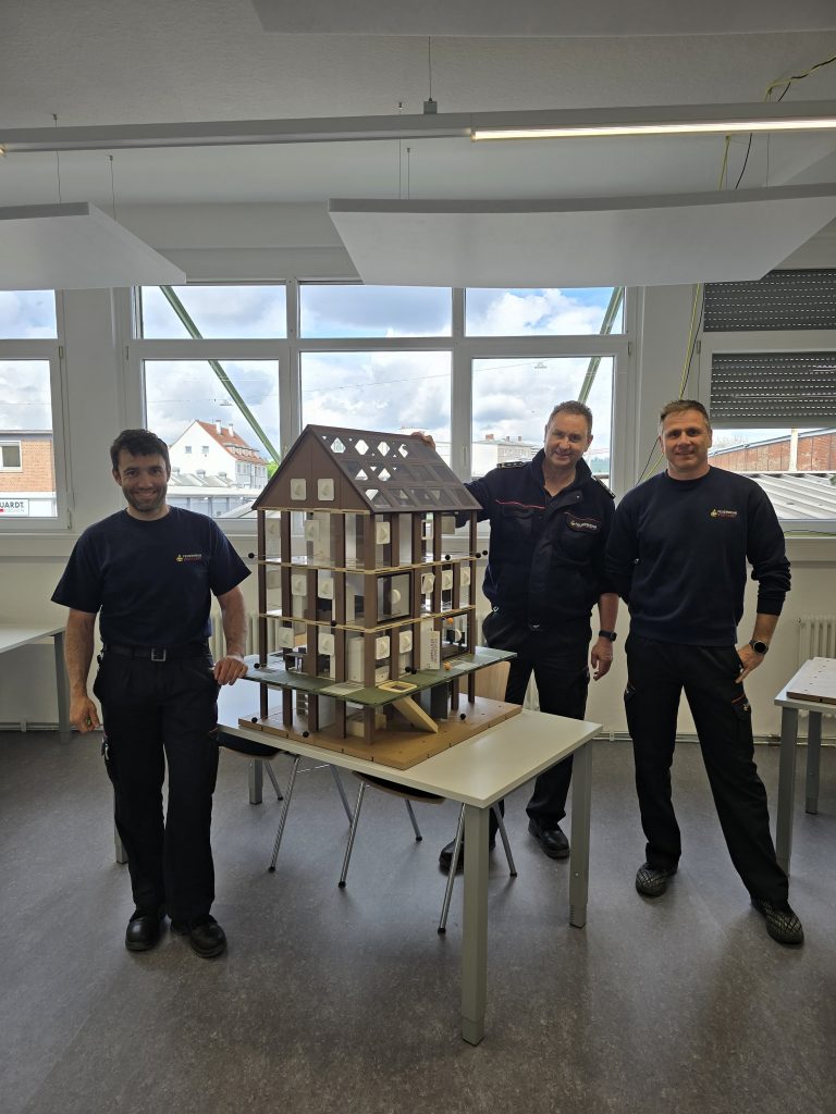 Geliefert wurde das Modul „Mehrfamilienhaus mit Keller und Satteldach“, das dort künftig in der Aus- und Fortbildung von Gruppenführern zum Einsatz kommt. Mit dem modularen System lassen sich taktische Szenarien anschaulich und realitätsnah durchspielen – sei es zur Vorbereitung auf komplexe Lagen, zur Entscheidungsfindung im Führungsteam oder zur Vertiefung taktischer Grundlagen.